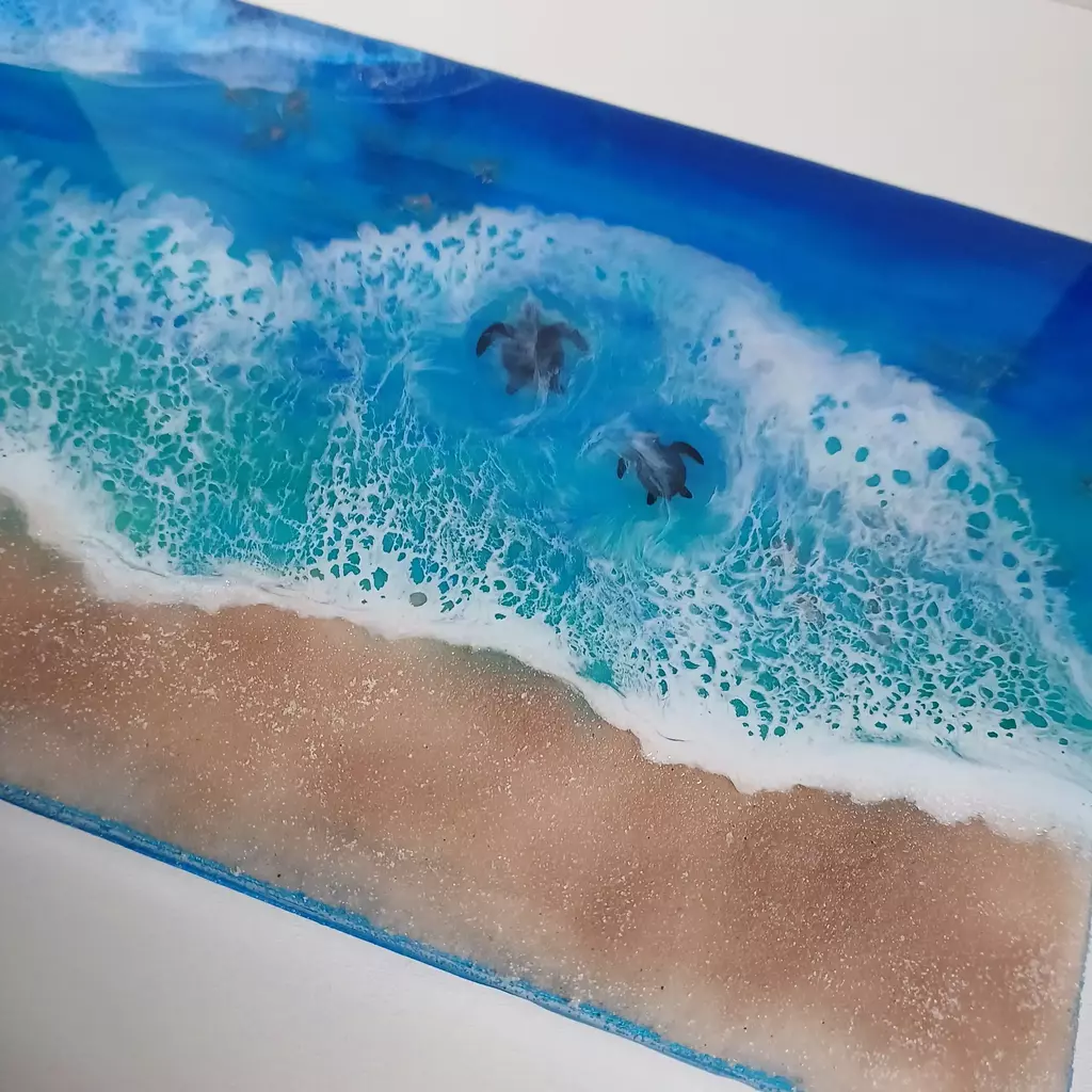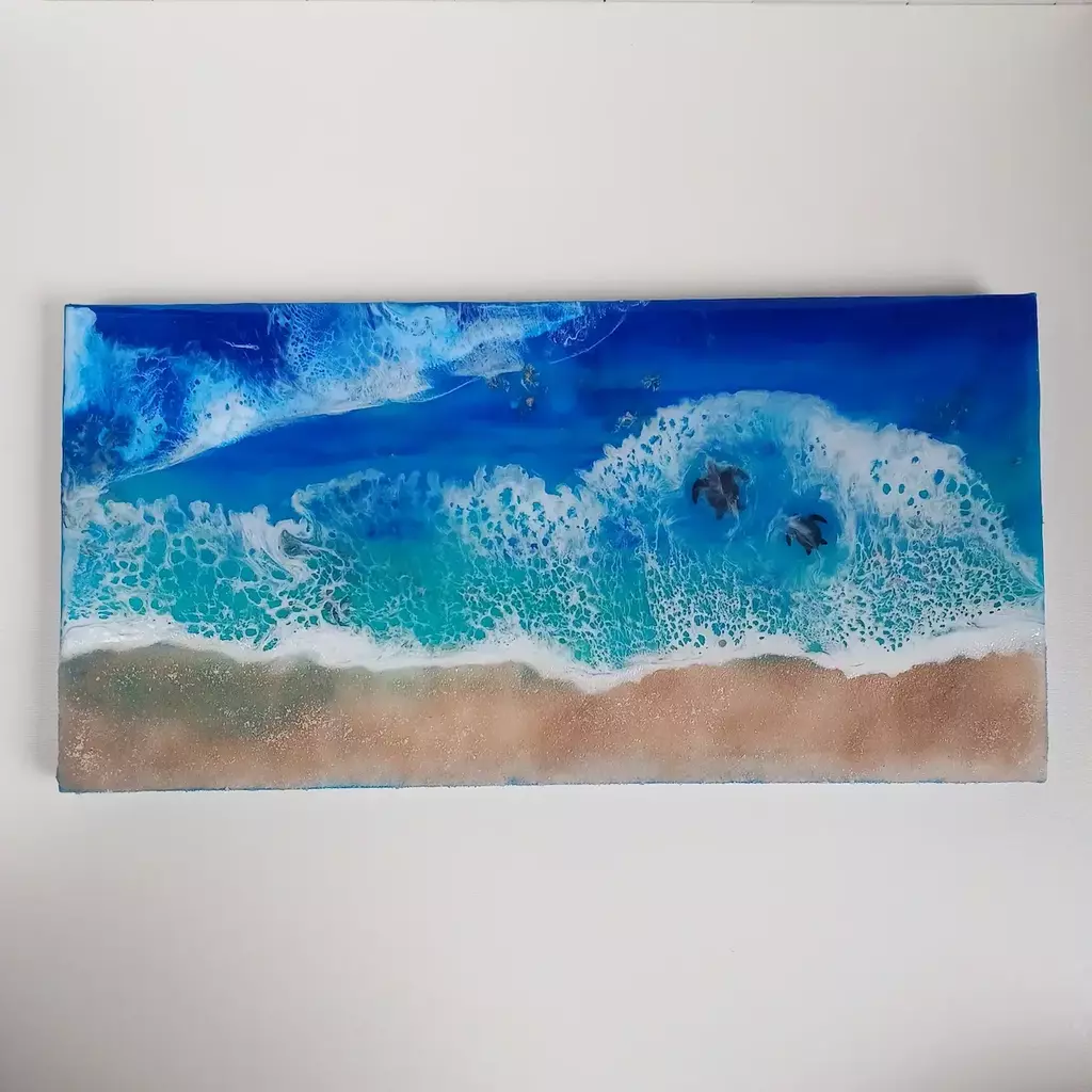 🌊 Quadro Mar Azul com Tartarugas — Tela com Resina Epóxi
